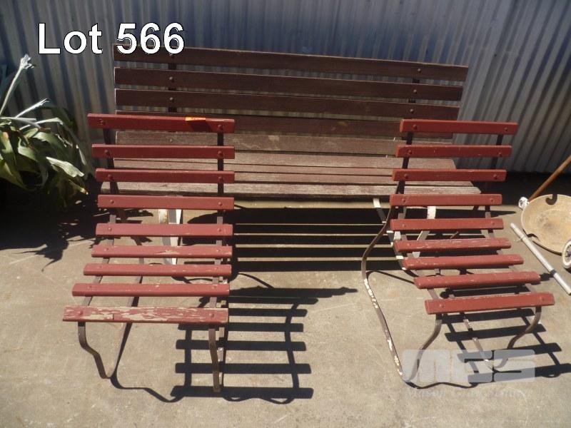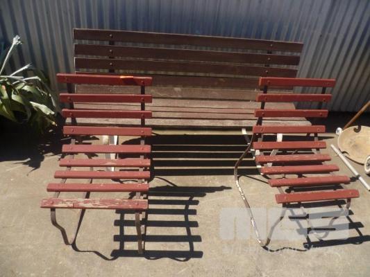 TIMBER SLAT OUTDOOR BENCH & PAIR OF TIMBER SLAT CHAIRS