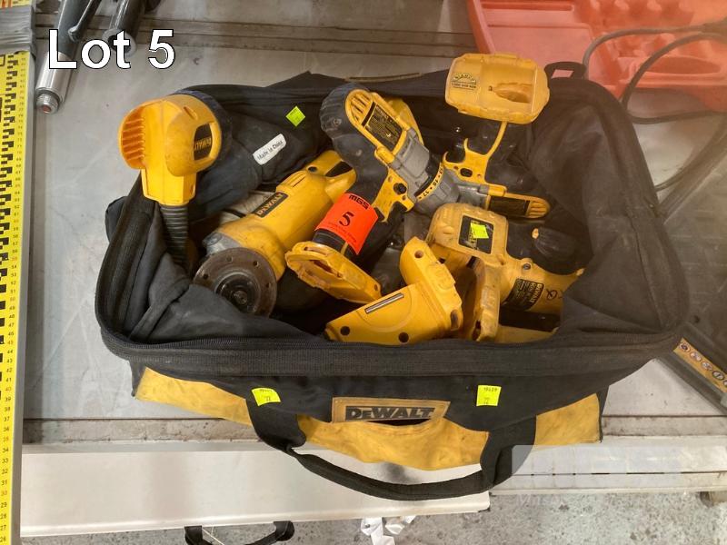 DEWALT POWER TOOLS INC DRILL, TORCH, GRINDER, ETC WITH CARRY BAG, NO BATTERY OR CHARGER