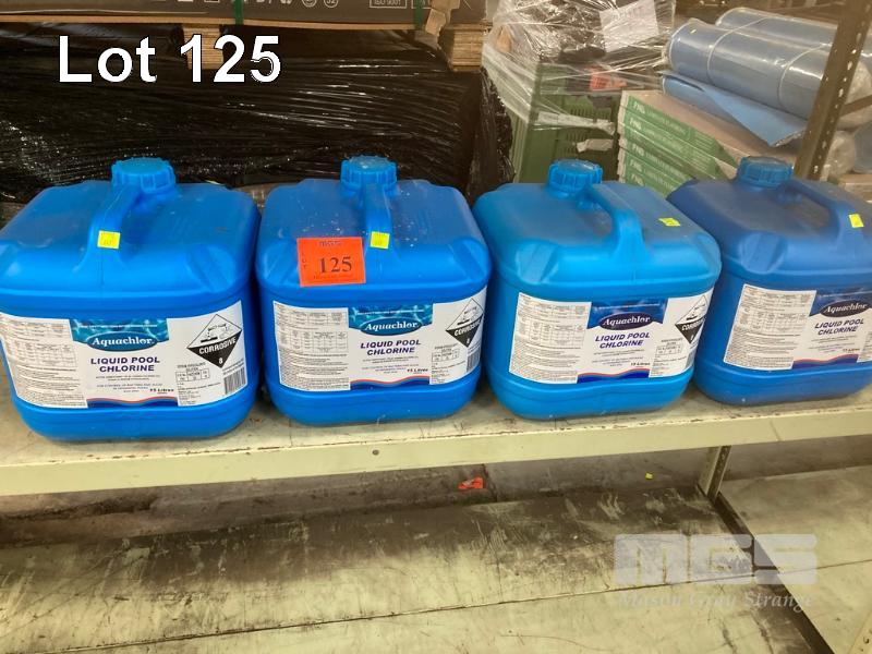 4 x 15 LITRE DRUMS LIQUID POOL CHLORINE, AQUACHLOR 130G/L SODIUM HYPOCHLORITE