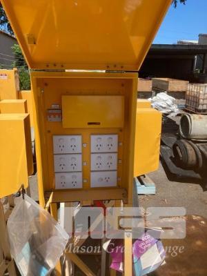 3 x SITE DISTRIBUTION BOARDS, STEEL FRAME, 11 x 240V, 10 AMP GPO'S, 1 x 415V, 32 AMP, GPO