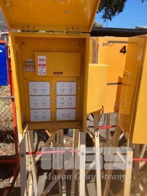 3 x SITE DISTRIBUTION BOARDS, STEEL FRAME, 11 x 240V, 10 AMP GPO'S, 1 x 415V, 32 AMP, GPO