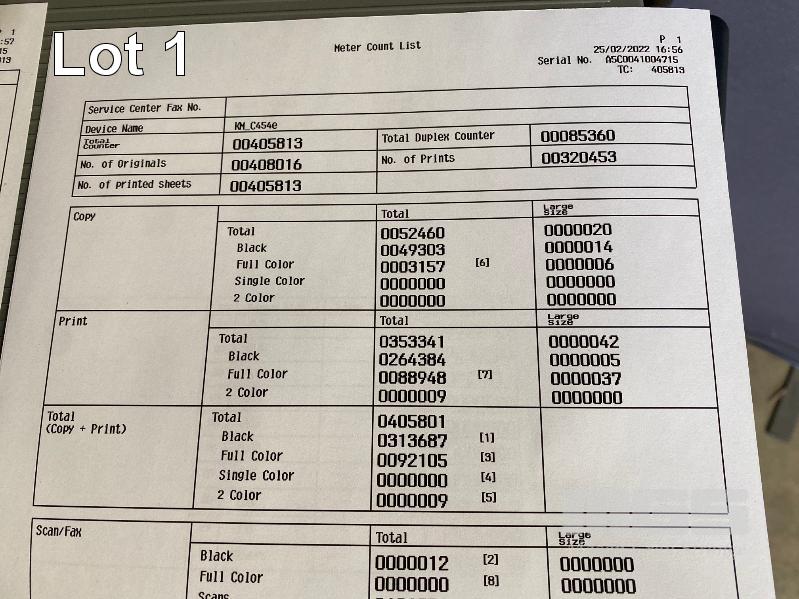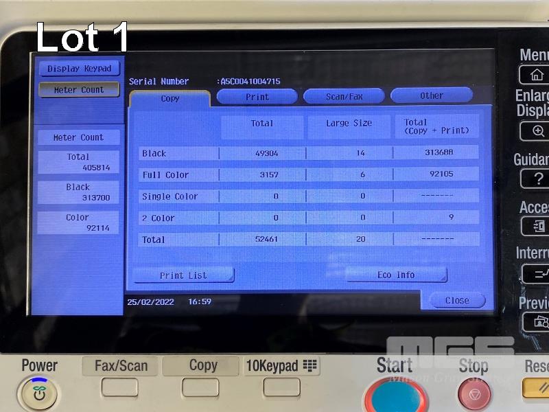 PHOTOCOPIER, KONICA MINOLTA BIZHUB C454e COLOUR DIGITAL, PRINTER USB & NETWORK PORTS, FINISHER (FS-534), 92,114 COLOUR & 313,700 B&W COPIES SHOWING (TEST PAGE ATTACHED) S/N:A5C0041004715
