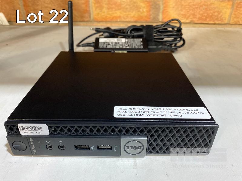 DESKTOP PC, DELL OPTIPLEX 7040 MICRO, CORE i7 6700T (6TH GEN) @ 2.8GHz, 8GB DDR4 RAM, 128GB M.2 SSD, INTEL HD VIDEO, 6 x USB, Wi-Fi, BLUETOOTH, WINDOWS 10 PRO INSTALLED & POWER SUPPLY (NO KEYBOARD, NO MOUSE) S/N:7PRP7C2