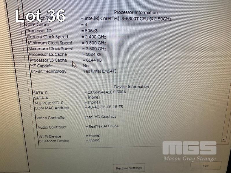 DESKTOP PC, DELL OPTIPLEX 7040 MICRO, CORE i5 6500T (6TH GEN) @ 2.5GHz, 8GB DDR4 RAM, 256GB SSD, INTEL HD VIDEO, 6 x USB, WINDOWS 10 PRO INSTALLED (NO KEYBOARD, NO MOUSE, NO POWER SUPPLY) S/N:1R7D2K2