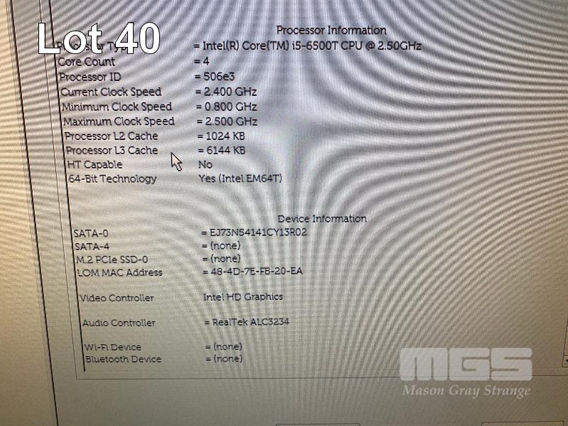 DESKTOP PC, DELL OPTIPLEX 7040 MICRO, CORE i5 6500T (6TH GEN) @ 2.5GHz, 8GB DDR4 RAM, 256GB SSD, INTEL HD VIDEO, 6 x USB, WINDOWS 10 PRO INSTALLED (NO KEYBOARD, NO MOUSE, NO POWER SUPPLY) S/N:1QW62K2