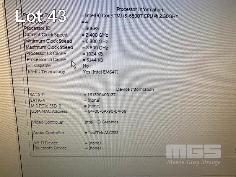 DESKTOP PC, DELL OPTIPLEX 7040 MICRO, CORE i5 6500T (6TH GEN) @ 2.5GHz, 8GB DDR4 RAM, 128GB SSD, INTEL HD VIDEO, 6 x USB, WINDOWS 10 PRO INSTALLED (NO KEYBOARD, NO MOUSE, NO POWER SUPPLY) S/N:8K39YC2