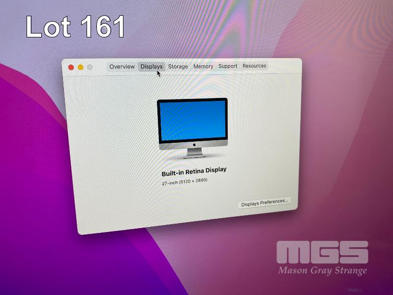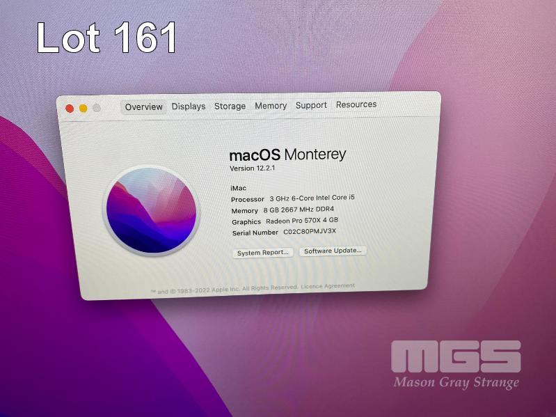 APPLE iMAC (A2115), CORE i5 8500 (8TH GEN) @ 3GHz, 8GB DDR4 RAM, 256GB NVMe SSD, BUILT-IN 27" RETINA 5K DISPLAY (5120x2880), 4GB AMD RADEON PRO 570X VIDEO, Wi-Fi, USB-C, MAC OS 12 INSTALLED (NOTE: DAMAGED SCREEN TOP RIGHT CORNER) (WITH AS NEW WIRELESS KEYBOARD (A2450) & WIRELESS MOUSE (A1657) NO CABLE) S/N:C02C80PMJV3X