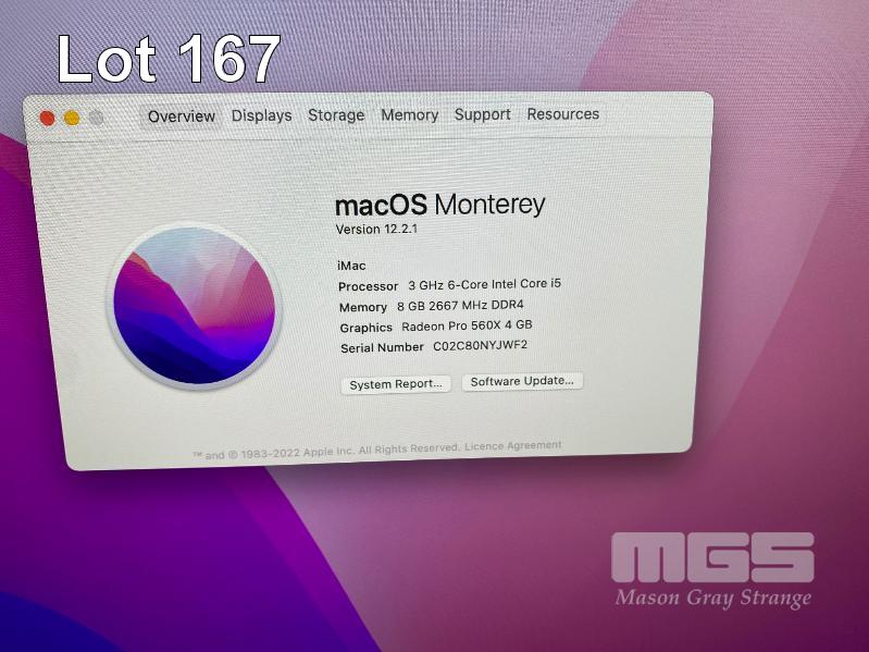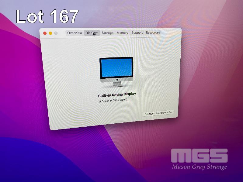 APPLE iMAC (A2116), CORE i5 8500 (8TH GEN) @ 3GHz, 8GB DDR4 RAM, 256GB NVMe SSD, BUILT-IN 21.5" RETINA DISPLAY (4096x2304), 4GB AMD RADEON PRO 560X VIDEO, Wi-Fi, USB-C, MAC OS 12 INSTALLED (WITH AS NEW WIRELESS KEYBOARD (A2450) & WIRELESS MOUSE (A1657) NO CABLE) S/N:C02C80NYJWF2