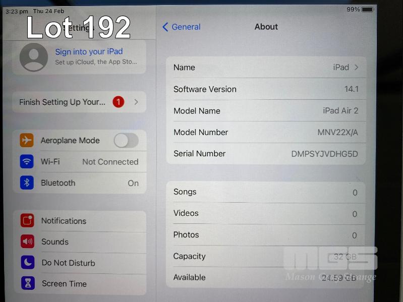APPLE iPAD AIR 2, 32GB, Wi-Fi, SPACE GREY, MODEL A1566 (NO CABLE, NO CHARGER) S/N:DMPSYJVDHG5D