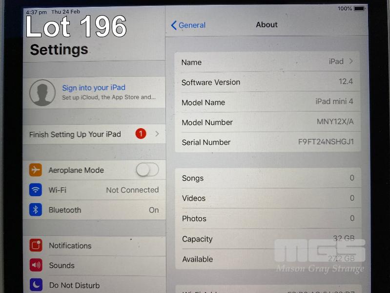 APPLE iPAD MINI 4TH GEN, 32GB, Wi-Fi, SPACE GREY, MODEL A1538 (NO CABLE, NO CHARGER) S/N:F9FT24NSHGJ1