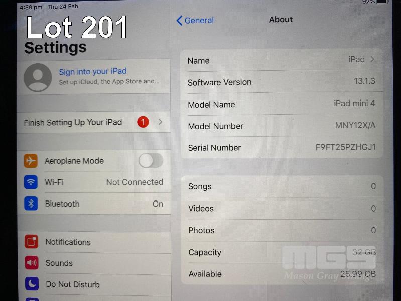 APPLE iPAD MINI 4TH GEN, 32GB, Wi-Fi, SPACE GREY, MODEL A1538 (NO CABLE, NO CHARGER) S/N:F9FT25PZHGJ1