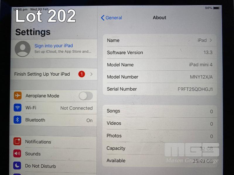 APPLE iPAD MINI 4TH GEN, 32GB, Wi-Fi, SPACE GREY, MODEL A1538 (NO CABLE, NO CHARGER) S/N:F9FT25QDHGJ1