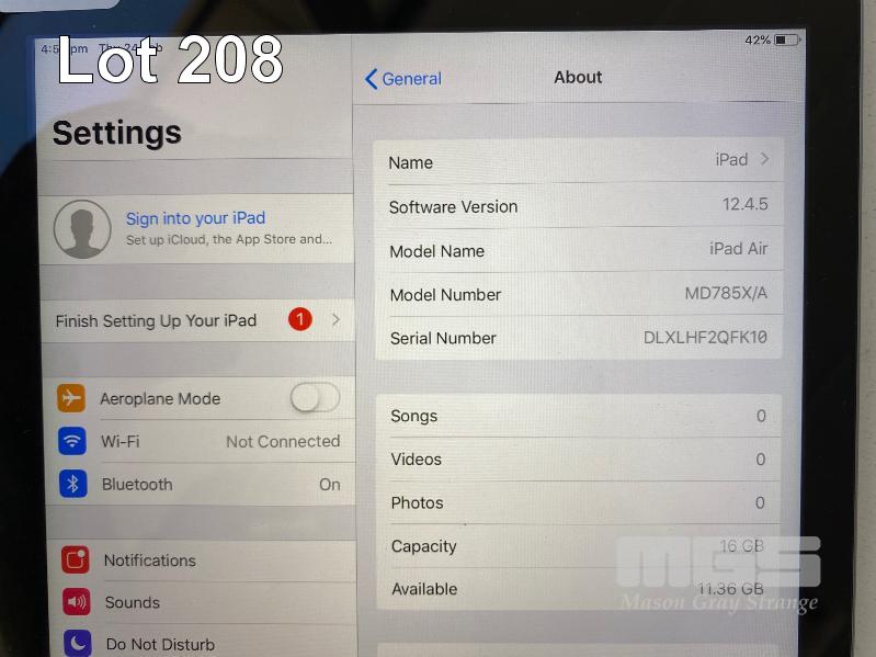 APPLE iPAD AIR, 16GB, Wi-Fi, SPACE GREY, MODEL A1474 (NO CABLE, NO CHARGER) S/N:DLXLHF2QFK10