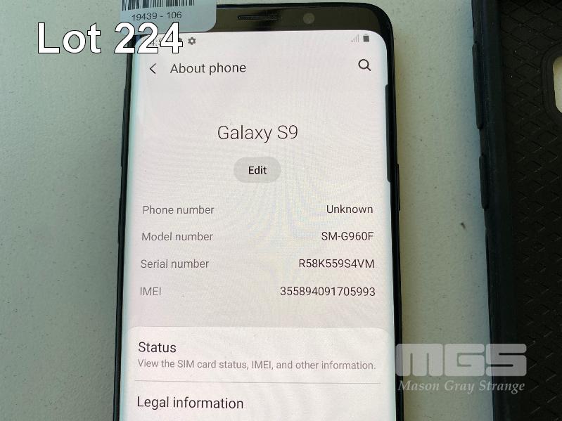 MOBILE PHONE, SAMSUNG GALAXY S9 SM-G960F, 64GB WITH CASE (NO CABLE, NO CHARGER) S/N:R58K559S4VM