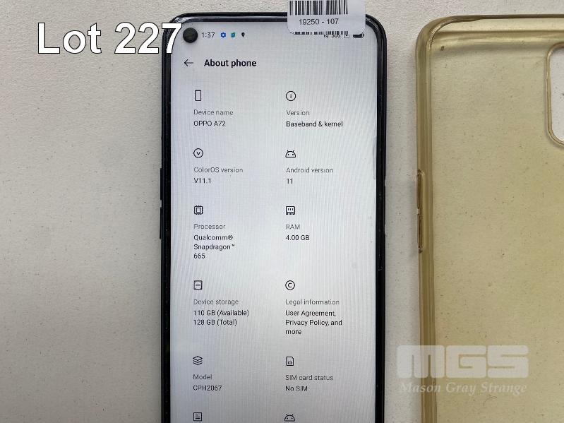 OPPO A72 SMARTPHONE, MODEL CPH2067, 128GB WITH COVER (OPTUS NETWORK) (NO CABLE, NO CHARGER)