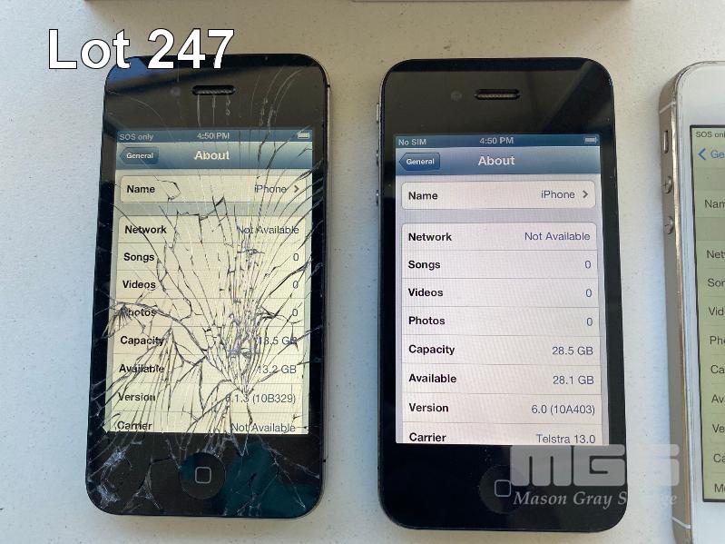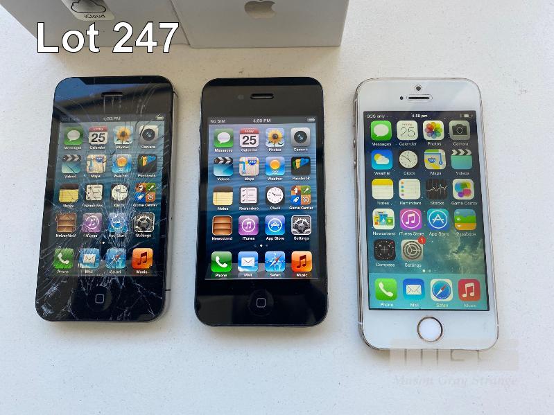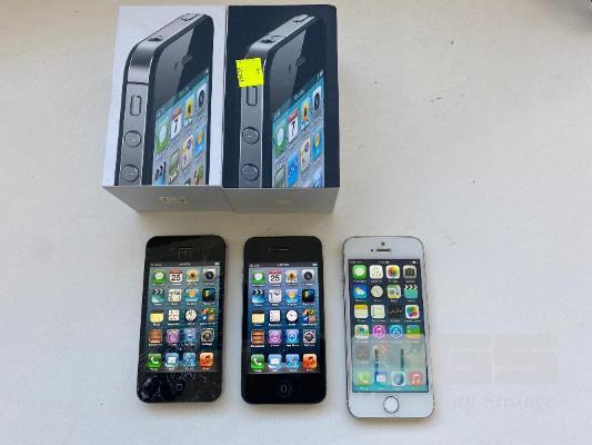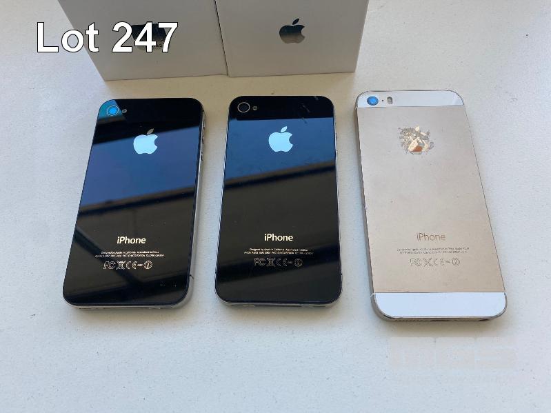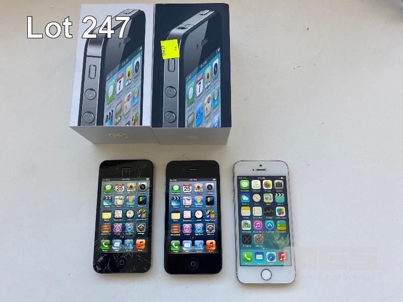 APPLE iPHONE 4S, 16GB, A1387 (NOTE: DAMAGED) APPLE iPHONE 4, 32GB, A1332 APPLE iPHONE 5S, 16GB, A1530 (NO CABLES, NO CHARGERS)