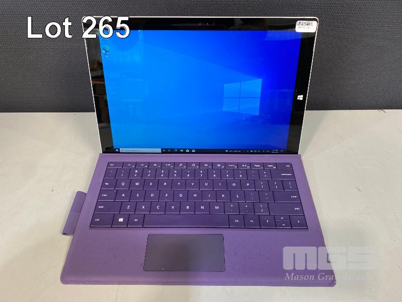 TABLET PC, MICROSOFT SURFACE PRO 3, MODEL 1631, CORE i5 4300U (4TH GEN) @ 1.9GHz, 8GB RAM, 256GB SSD, 12" TOUCHSCREEN, Wi-Fi, WINDOWS 10 PRO INSTALLED, KEYBOARD TYPE COVER & POWER SUPPLY S/N:023165453153