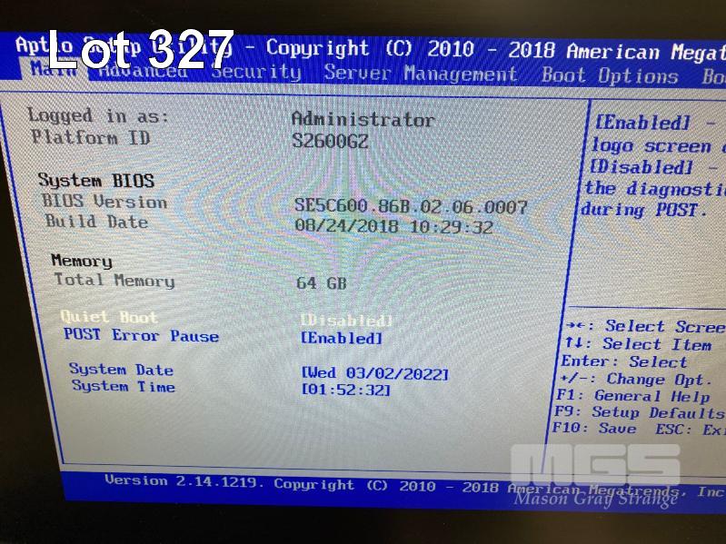 RACKMOUNT SERVER, INTEL SERVER SYSTEM R2208GZ4GC, 2U, 2 x XEON E5-2630 v2 @ 2.6GHz, 64GB ECC DDR3 RAM, 2 x 900GB SAS HDD, 1 x 600GB SAS HDD, DVD-ROM, 2 x PSU S/N:FGBF3161152