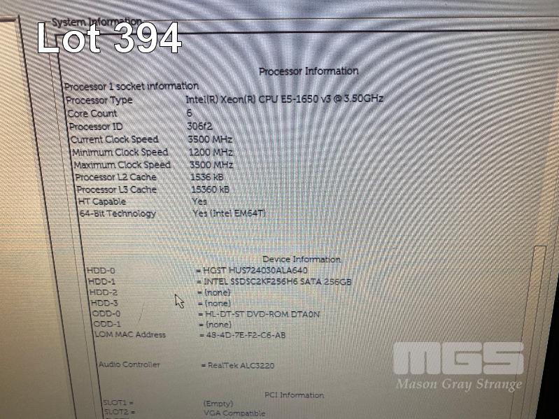 MIDI-TOWER PC, DELL PRECISION TOWER 5810 WORKSTATION, XEON E5-1650 v3 @ 3.5GHz, 32GB DDR4 ECC RDIMM RAM, 256GB SSD, 3TB SATA HDD, DVD-ROM, 4GB NVIDIA QUADRO M2000 VIDEO (4DP), WINDOWS 10 PRO INSTALLED (NO KEYBOARD, NO MOUSE) S/N:HJ390J2