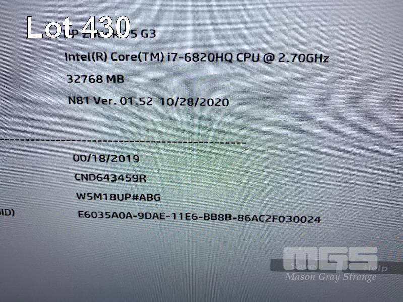 LAPTOP, HP ZBOOK 15 G3 MOBILE WORKSTATION (W5M18UP), CORE i7 6820HQ @ 2.7GHz, 32GB DDR4 RAM, 256GB SSD, 15.6" WIDESCREEN (1920x1080), 4GB NVIDIA QUADRO M2000M VIDEO, Wi-Fi, BLUETOOTH, WINDOWS 11 PRO INSTALLED (NO POWER SUPPLY) S/N:CND643459R