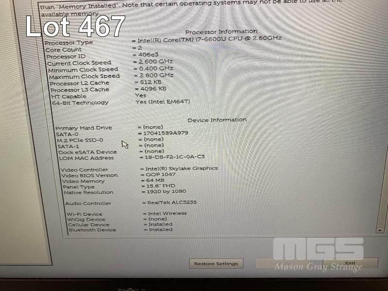 LAPTOP, DELL LATITUDE E5570, CORE i7 6600U (6TH GEN) @ 2.6GHz, 16GB DDR3 RAM, 256GB M.2 SSD, 15.6" WIDESCREEN (1920x1080), INTEL SKYLAKE GRAPHICS, CELLULAR, Wi-Fi, BLUETOOTH, WINDOWS 10 PRO INSTALLED & POWER SUPPLY S/N:H7ZZWF2