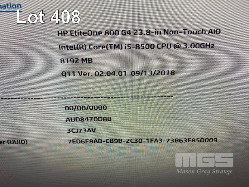 ALL-IN-ONE PC, HP ELITEONE 800 G4 (3CJ73AV), CORE i5 8500 (8TH GEN) @ 3GHz, 8GB DDR4 RAM, 256GB NVMe M.2 SSD, INBUILT 23.8" WIDESCREEN (1920x1080), INTEL UHD GRAPHICS, Wi-Fi, 6 x USB, 1 x USB-C, WINDOWS 10 PRO INSTALLED (NO KEYBOARD, NO MOUSE) (NOTE: SCRATCHES ON SCREEN) S/N:AUD8470D8B