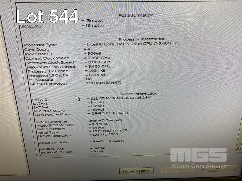 ALL-IN-ONE PC, DELL OPTIPLEX 7450, CORE i5 7500 (7TH GEN) @ 3.4GHz, 8GB DDR4 RAM, 512GB SSD, INBUILT 23.8" FHD WIDESCREEN (1920x1080), INTEL HD VIDEO, WEBCAM, 7 x USB, 1 x USB-C, WINDOWS 10 HOME INSTALLED, KEYBOARD & MOUSE S/N:CYG4LQ2