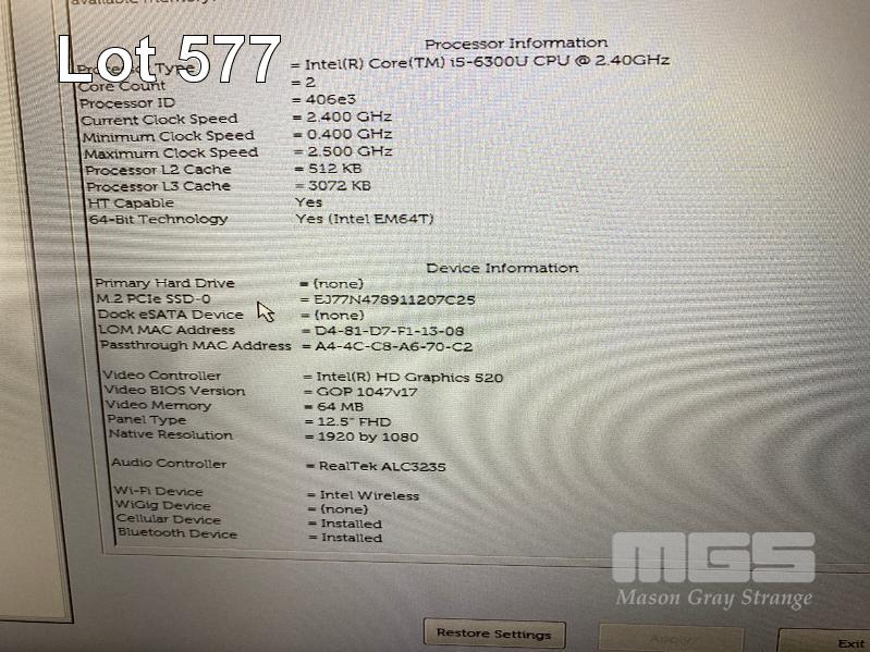 LAPTOP, DELL LATITUDE E7270, CORE i5 6300U (6TH GEN) @ 2.4GHz, 8GB DDR4 RAM, 256GB M.2 SSD, 12.5" WIDESCREEN (1920x1080), INTEL HD VIDEO, CELLULAR, Wi-Fi, BLUETOOTH, WINDOWS 10 PRO INSTALLED & POWER SUPPLY S/N:DLPW5H2