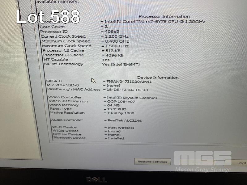 LAPTOP, DELL LATITUDE E7370, CORE m7-6Y75 @ 1.2GHz, 16GB DDR3 RAM, 512GB M.2 SSD, 13.3" WIDESCREEN (1920x1080), INTEL SKYLAKE GRAPHICS, Wi-Fi, BLUETOOTH, WINDOWS 10 PRO INSTALLED (NO POWER SUPPLY) S/N:1MM4TC2