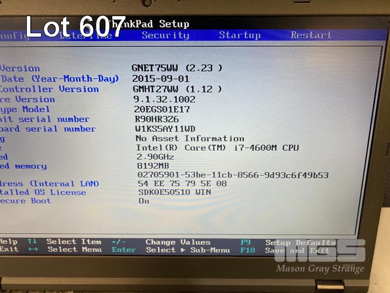 LAPTOP, LENOVO THINKPAD W541 (20EGS01E17), CORE i7 4600M (4TH GEN) @ 2.9GHz, 16GB DDR3 RAM, 256GB SSD, DVD-RW, 15.6" WIDESCREEN (1920x1080), INTEL HD VIDEO, 2GB NVIDIA QUADRO K1100M VIDEO, Wi-Fi, BLUETOOTH, WINDOWS 10 PRO INSTALLED & POWER SUPPLY (NOTE: MARKS ON SCREEN) S/N:R90HR3Z6