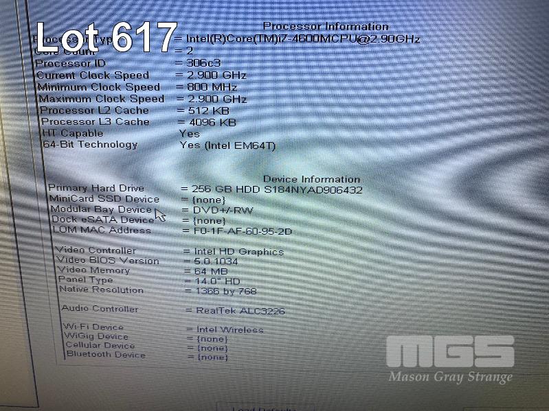 LAPTOP, DELL LATITUDE E6440, CORE i7 4600M (4TH GEN) @ 2.9GHz, 8GB DDR3 RAM, 256GB SSD, DVD-RW, 14" WIDESCREEN (1600x900), INTEL HD VIDEO, Wi-Fi, WINDOWS 10 HOME INSTALLED, DOCKING STATION & POWER SUPPLY (NOTE: RUNS SLOW, UNABLE TO COMPLETE WINDOWS SETUP) S/N:5RDHYY1