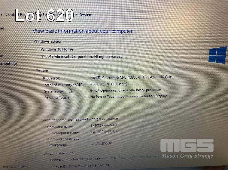 LAPTOP, LENOVO V110-15IAP, CELERON N3350 @ 1.1GHz, 4GB RAM, 500GB SATA HDD, 15" WIDESCREEN, WINDOWS 10 HOME INSTALLED & POWER SUPPLY (NOTE: DAMAGE TO CASING LHS) S/N:R90NPP1V