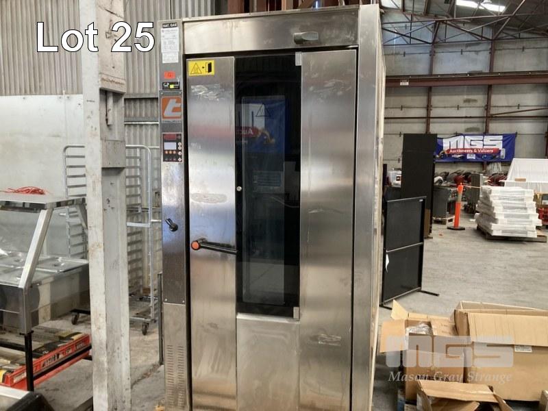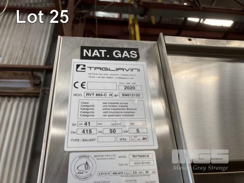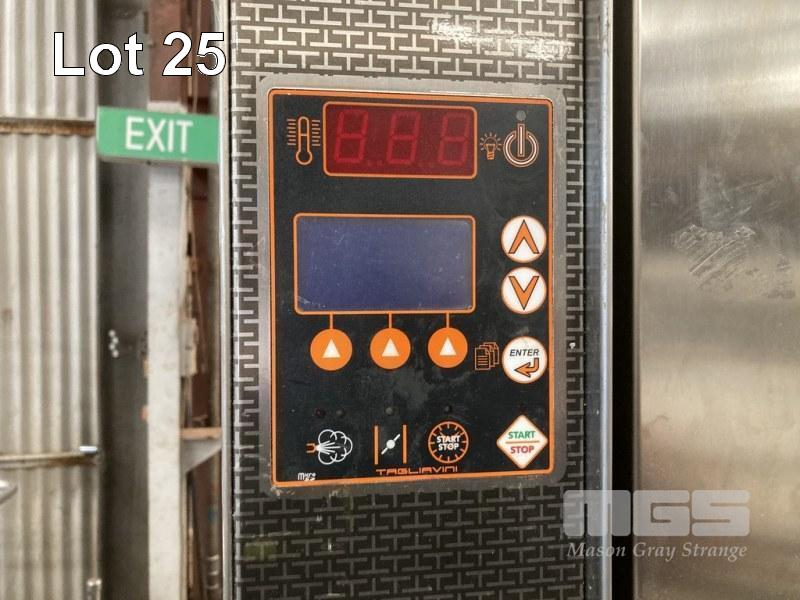 BAKERS OVEN, TAGLIAVINI MOD: RVT665-CH DOM: 2020 SINGLE RACK DIGITAL CONTROL STAINLESS STEEL CASED, 415V S/NO: SNO12152 WITH STAINLESS STEEL EXTRACTION HOOD & ASSOCIATED PARTS ( WAS REMOVED BY LICENSED TECHNICIAN )