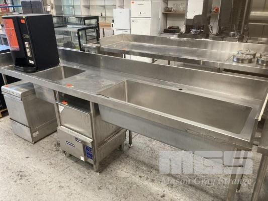 STAINLESS STEEL, TWIN BOWL SINK, 290 x 70cm WITH SPLASHBACK