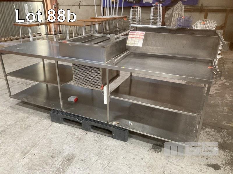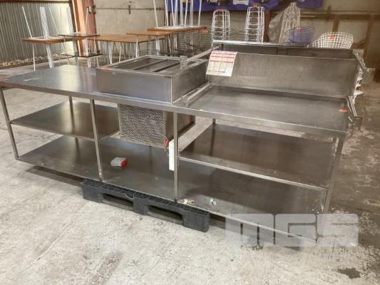 3 TIER STAINLESS STEEL BENCH, WITH 2 TIER PREP SHELF & BAIN MARIE CHILLER, 240v, 2950 x 880mm