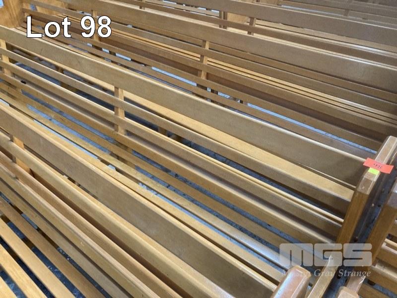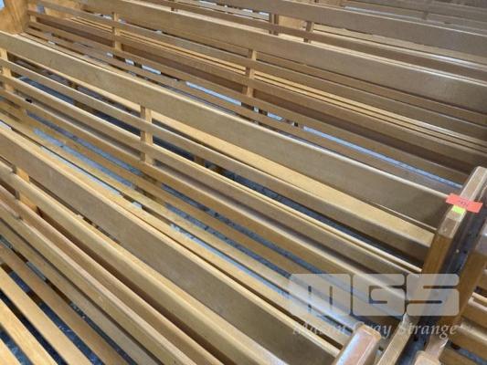 CHURCH PEW, 365cm, STAINED TIMBER SLAT, SEAT & BACK