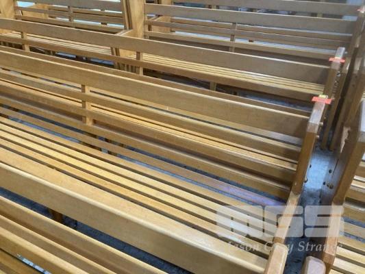 CHURCH PEW, 365cm, STAINED TIMBER SLAT, SEAT & BACK