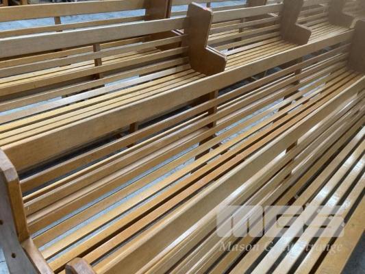 CHURCH PEW, 365cm, STAINED TIMBER SLAT, SEAT & BACK
