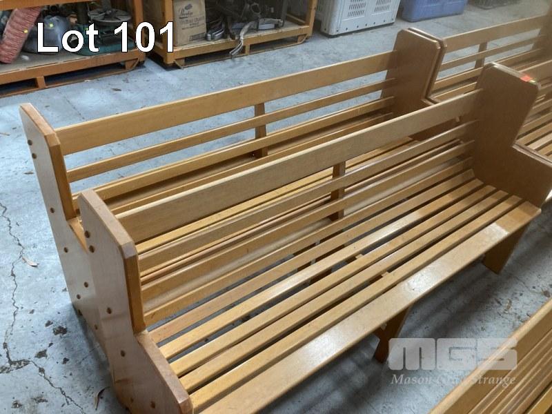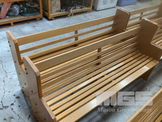 2 x CHURCH PEWS, 182cm, STAINED TIMBER SLAT, SEAT & BACK