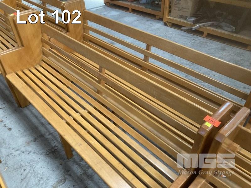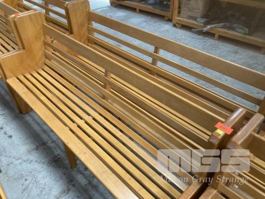 2 x CHURCH PEWS, 182cm, STAINED TIMBER SLAT, SEAT & BACK