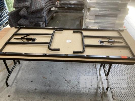 2 x TRESTLE TABLES, EACH 184 x 77cm, LAMINATE TOP