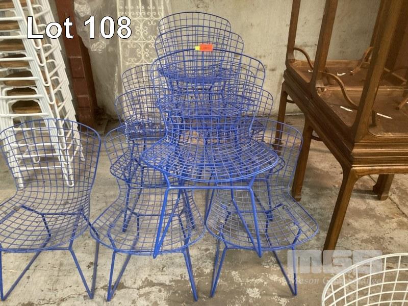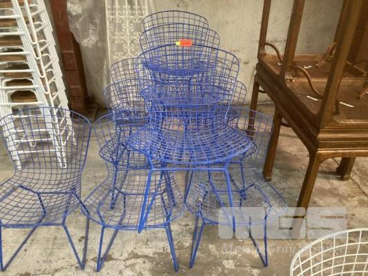 10 x CAFE CHAIRS, WIRE MESH LOOK, BLUE METAL