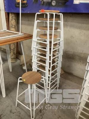 10 x LOWLINE STOOLS, STEEL FRAME, TIMBER SEAT