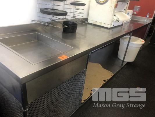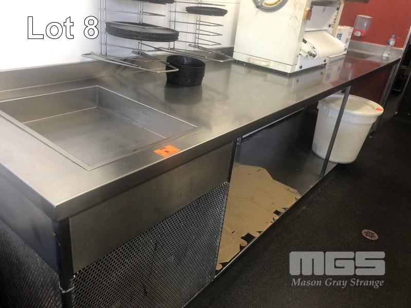 2 TIER STAINLESS STEEL BENCH, WITH DEEP BOWL SINK & BAIN MARIE CHILLER, 240v, 3800 x 840mm