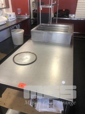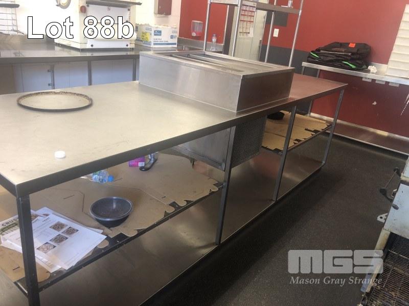 3 TIER STAINLESS STEEL BENCH, WITH 2 TIER PREP SHELF & BAIN MARIE CHILLER, 240v, 2950 x 880mm