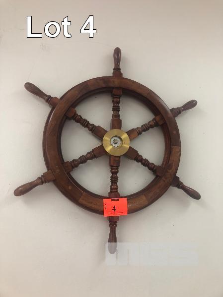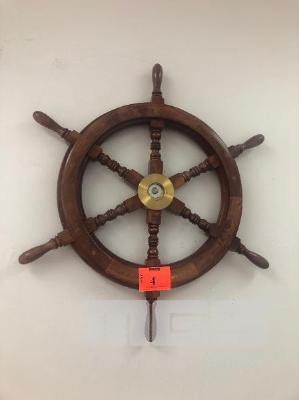 TIMBER SHIPS WHEEL, BRASS CENTER, 6 SPOKE, 650mm (D)