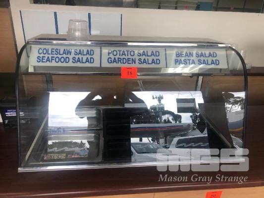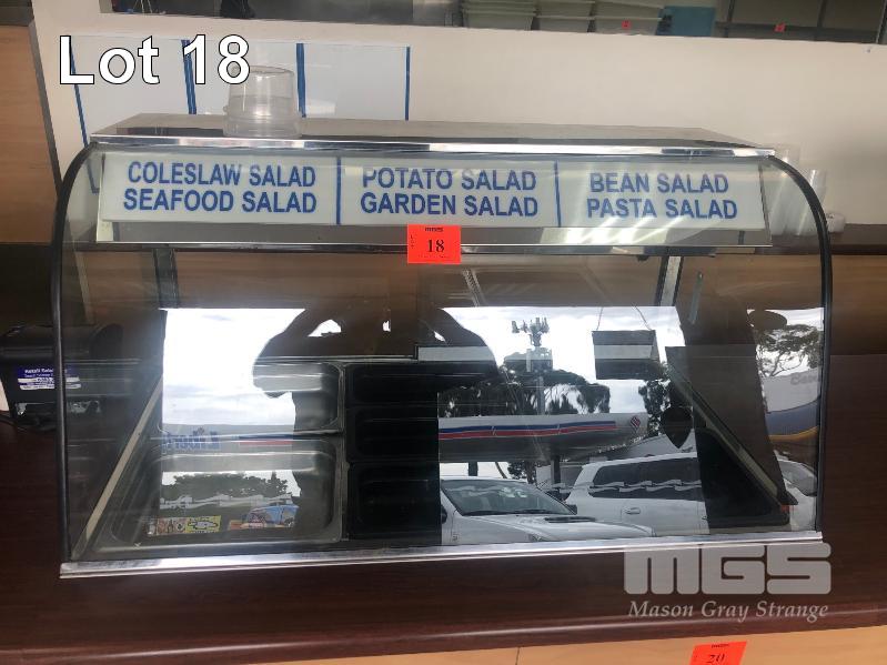WOODSON CURVED GLASS DISPLAY FRIDGE, STAINLESS STEEL, 1030mm (L), MODEL: WCFC23, SERIAL: 000111, DOM: DEC 2006, MULTI TRAY, DIGITAL TEMP DISPLAY, REAR ACCESS, SELF CONTAINED, 240v
