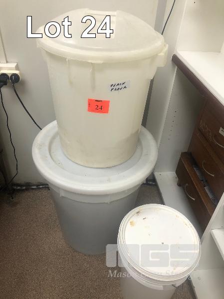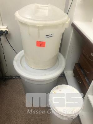 2 x PVC PRODUCE TUBS WITH LIDS, 80L & 60L APPROX