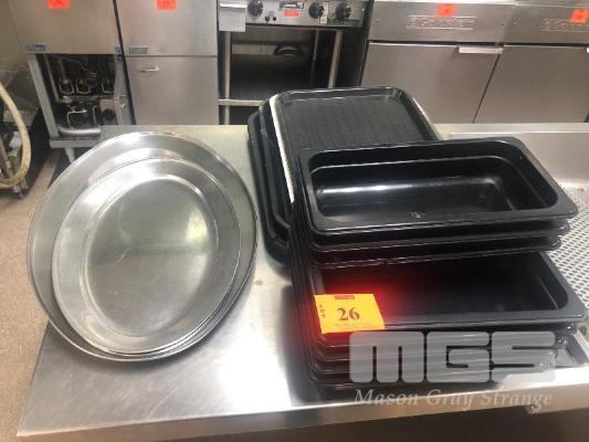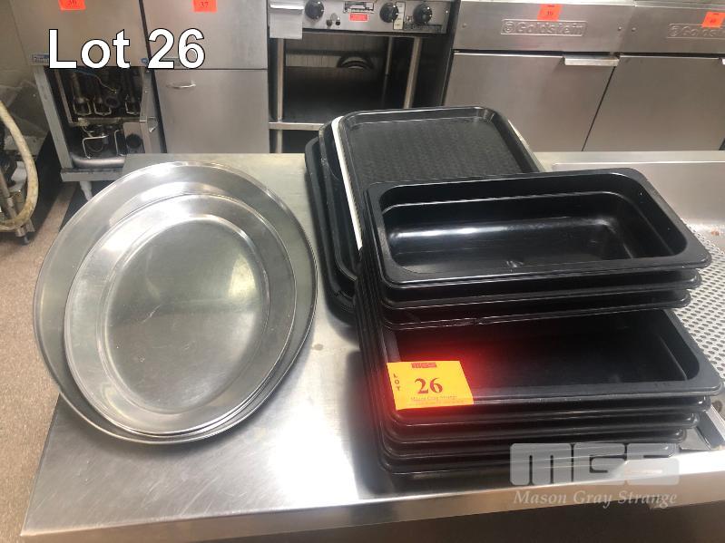 10 x STAINLESS STEEL & PLASTIC SERVING TRAYS & 8 x PLASTIC GASTRONORM TRAYS