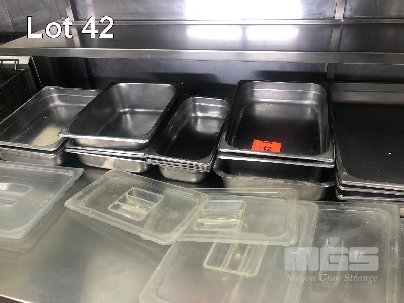 15 x STAINLESS STEEL GASTRONORM TRAYS, VARIOUS SIZES WITH PLASTIC LIDS